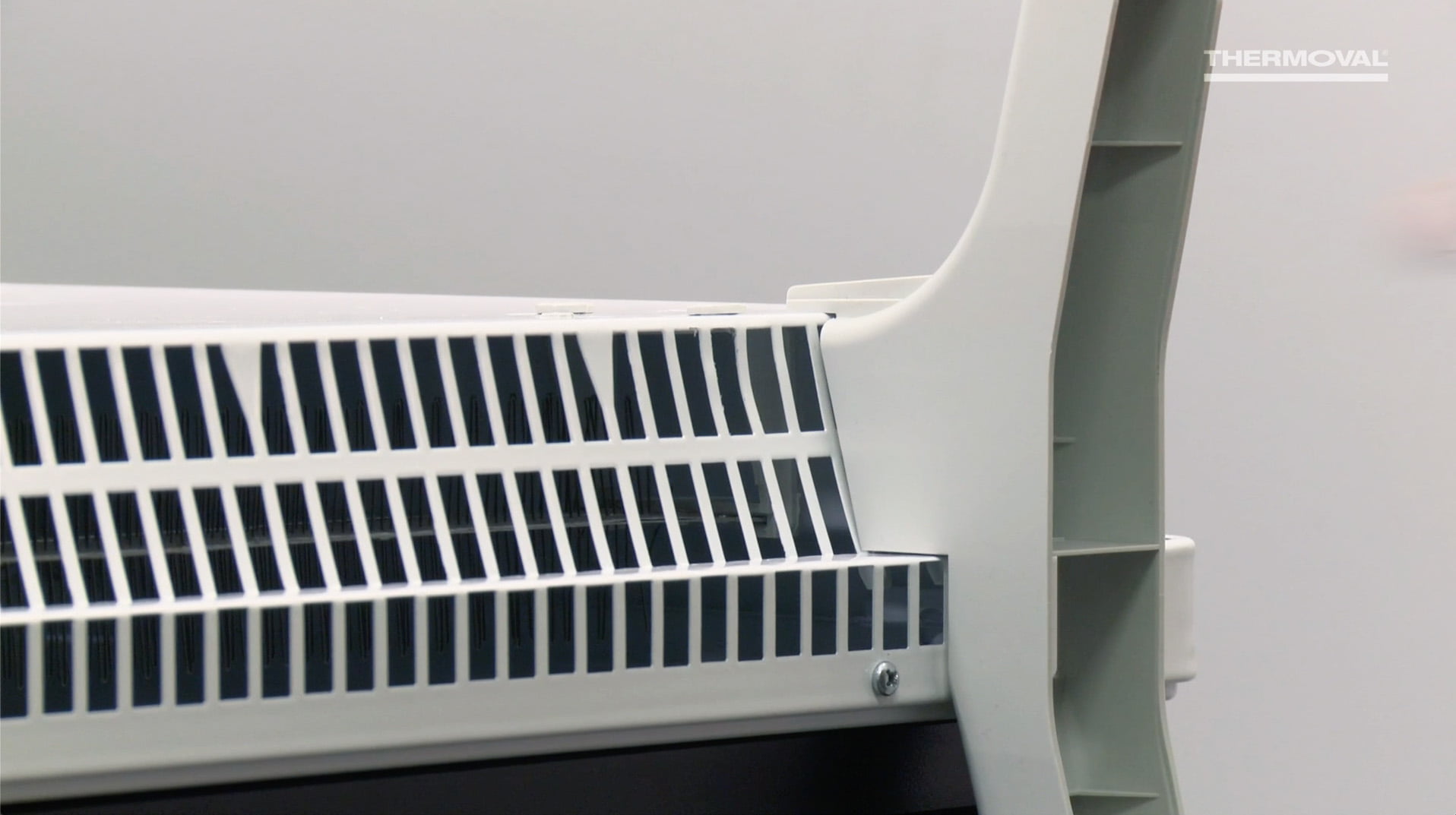 - Nasadź grzejnik na dolne ząbki, aby weszły pomiędzy otwory dolnej kratki wlotowej powietrza.